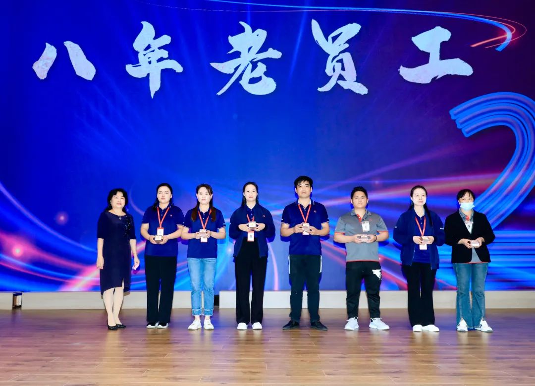 長期紮根在各自崗位的彩迅人,為企業的持續發展注入中堅力量。他們辛勤耕耘,以不凡的毅力做出卓越貢獻。為感謝他們多年來的堅守與奉獻,總經理陳太為入職滿八年的老員工頒發金牌,以茲鼓勵。